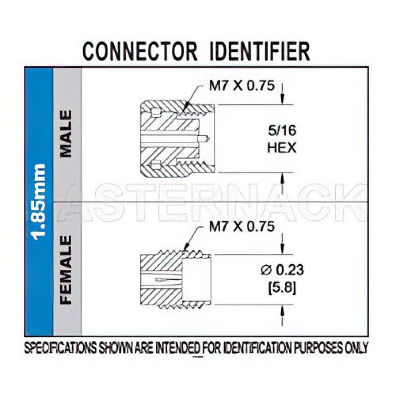 The Ebeestock 1.85mm coaxial connector has a passivated stainless steel body. Our ET09794 1.85mm connector uses beryllium copper contact. This 1.85mm female coaxial RF connector is RoHS and REACH compliant.