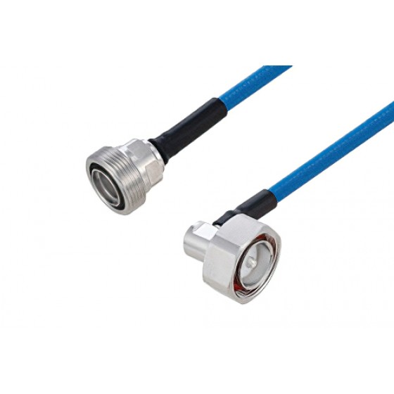 Ebeestock RF coax low PIM cable assembly is built with right angle TC-SPP250-716M-RA-LP 7/16 DIN cable connection on one end and TC-SPP250-716F-LP 7/16 DIN cable connection on the other. Our low PIM right angle TC-SPP250-716M-RA-LP 7/16 DIN to TC-SPP250-716F-LP 7/16 DIN cable assemblies have a male gender on end 1 and female on end 2. This TC-SPP250-716M-RA-LP 7/16 DIN to TC-SPP250-716F-LP 7/16 DIN cable is a male to female coax assembly, ET16247, can also be known as a low PIM right angle TC-SPP250-716M-RA-LP 7/16 DIN plug to TC-SPP250-716F-LP 7/16 DIN jack cable assembly and will be shipped same-day as it is purchased.