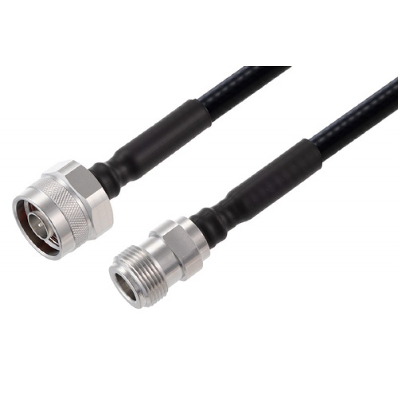 Ebeestock RF coax low PIM cable assembly is built with type N cable connection on one end and type N cable connection on the other. Our low PIM type N to N type cable assemblies have a male gender on end 1 and female on end 2. This N type to type N cable is a male to female coax assembly, ET23752, can also be known as a low PIM type N plug to type N jack cable assembly and will be shipped same-day as it is purchased.