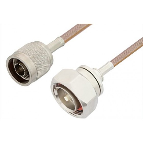 Ebeestock RF coax cable assembly is built with N type cable connection on one end and 7/16 DIN cable connection on the other. Our type N to 7/16 DIN cable assemblies have a male gender on end 1 and male on end 2. This type N to 7/16 DIN cable is a male to male coax assembly, ET27397, can also be known as a N type plug to 7/16 DIN plug cable assembly and will be shipped same-day as it is purchased.