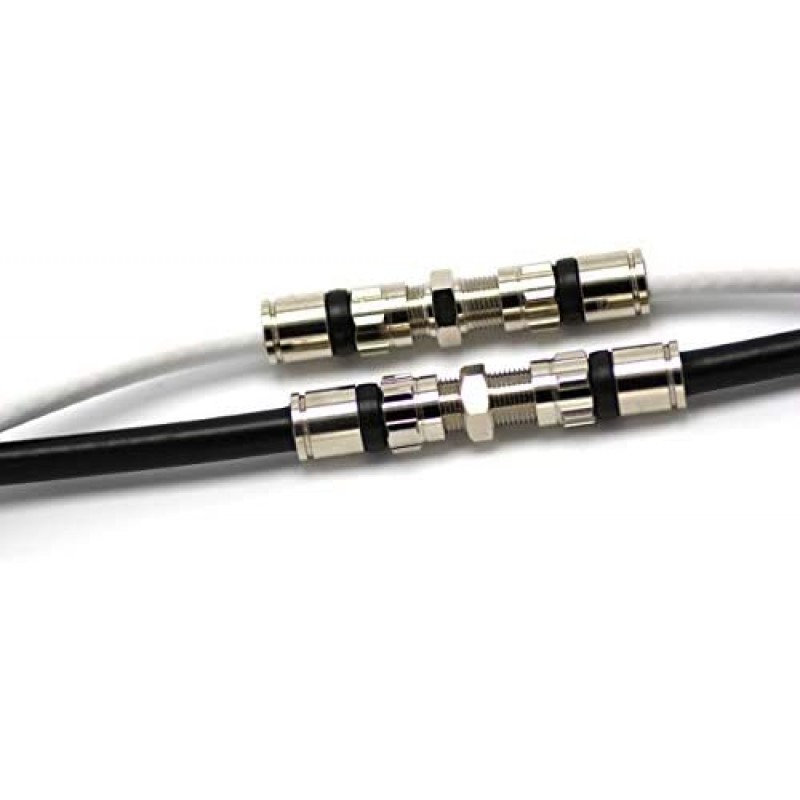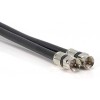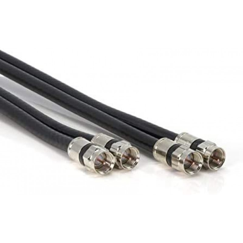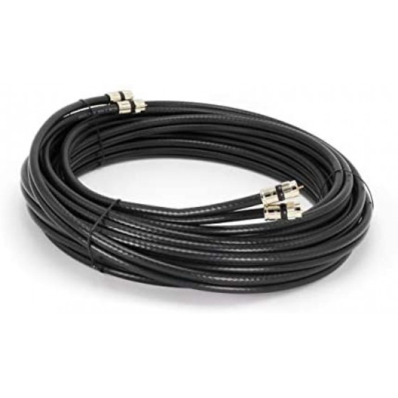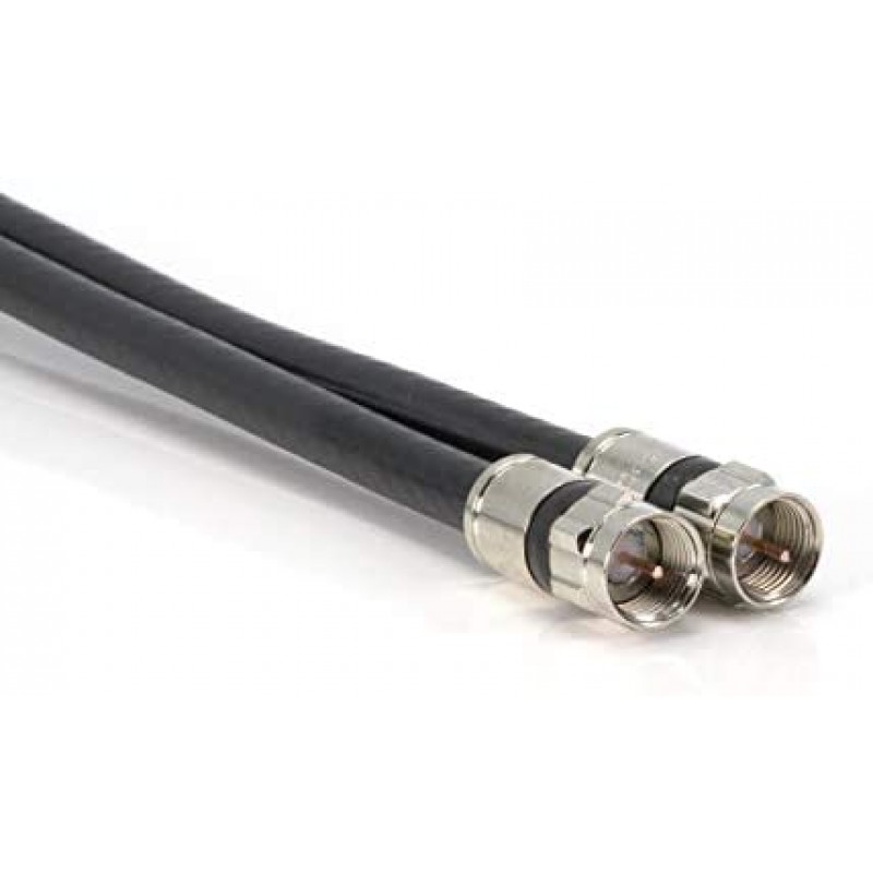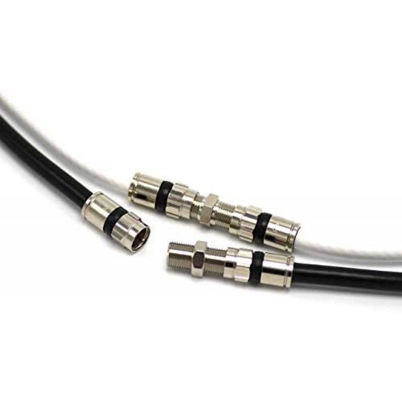This cable is available in Black and White, and comes in lengths from 1 foot to 200 feet (including our most popular lengths of 50 feet, 75 feet, 100 feet, 150 feet, and 200 feet). The center conductor is made of high grade copper coated steel that has been swept to 4.0GHz, making this a great application for Satellite, Cable, Wireless (including cell services), and Communication uses. With very low signal attenuation (2.75dB at 750MHz for our 50' cable) it can be used on long runs without the loss of signal or picture. We use high grade 360 degree compression connectors to ensure that this cable remains water and weather proof, without the loss of any signal. This ensures that the ends can withstand pulling, weather, extreme hot and cold (rated up to 167 degrees F). The coaxial shielding is 60% aluminum magnesium alloy braid and 100% solid aluminum foil (including an 18% overlap) to ensure that there is no interference from neighboring or rouge signals. The outer jacket is a flexible UV resistant PVC and has been tested to be used in many extreme conditions for use both inside and outside. The dielectric center is made from gas injected foam PE and has an almost perfect consistency of 75 Ohms +/-3 throughout the entire length of the coax cable. The outside diameter of the cable is 0.27 inches, about 6.85 mm, with the connectors being slightly larger at .4375 (7/16) of an inch (11.11 mm).