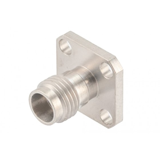 2.4mm Female Field Replaceable Connector 4 Hole Flange Mount 0.02 inch Pin, .340 inch Hole Spacing, with Metal Contact Ring