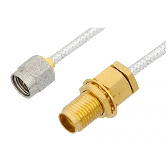2.92mm Male to 2.92mm Female Bulkhead Cable 6 Inch Length Using ET38322 Coax, LF Solder, RoHS