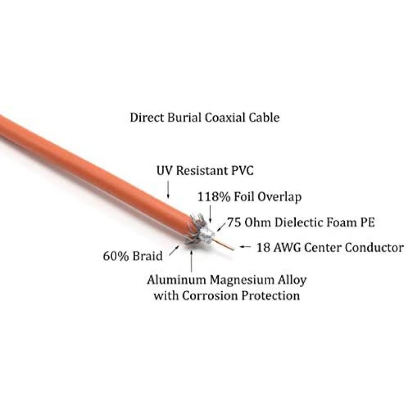 - RG6 with 18AWG Solid Copper Center Conductor