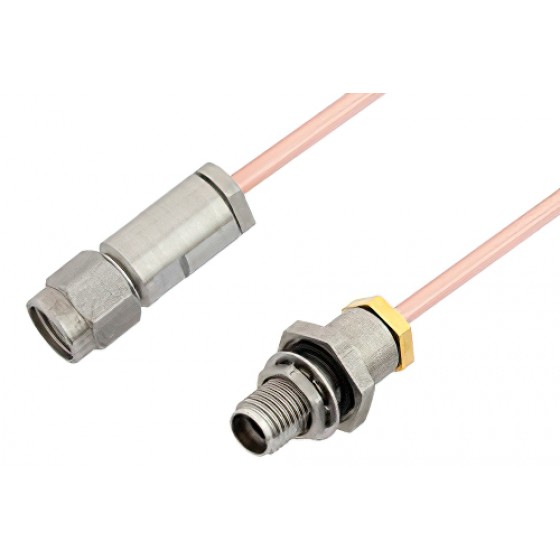 Radio frequency assembly 3.5mm male to 3.5mm female bulkhead cable 6 inch length using ET-RG405 coax from Ebeestock is part of the largest selections of same-day ship coaxial cables for RF, microwave and millimeter wave interconnect solutions. Ebeestock coaxial cable assembly products are used in applications requiring high quality such as laboratory RF test and measurement, rugged and designed for defense / military, telecom antenna tower component jumper connection, production environments, general use, etc. 3.5mm male to 3.5mm female bulkhead cable 6 inch length using ET-RG405 coax, like our other Ebeestock coaxial cable assemblies, will ship the same day and any custom 3.5mm to 3.5mm cable assembly orders will ship same day as well.