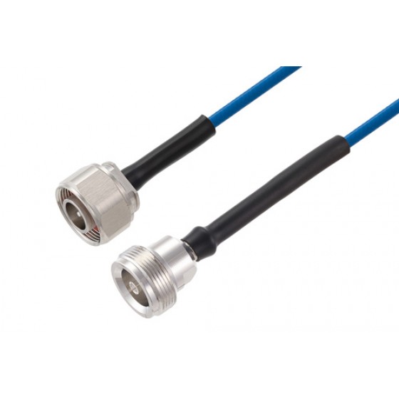 Low PIM 4.1/9.5 mini DIN plug to 4.1/9.5 mini DIN jack cable assembly is just one of more than 45,000 in-stock RF products available. Ebeestock is where to buy a high quality 4.1/9.5 mini DIN to 4.1/9.5 mini DIN cable assembly for quick shipment worldwide. Variations of 4.1/9.5 mini DIN cable assemblies can also be built and will ship same-day as well, search this website or contact us for assistance. High quality custom RF cable assembly products for microwave and millimeter wave radio transmitter receiver, antenna jumper, component inter-connection and more for RF test & measurement labs, rugged and MIL-STD designed military / defense, aerospace, telecom, phase stable, phase and delay matching, outdoor and harsh environment and other radio frequency applications can be manufactured. For all these reasons and more, Ebeestock is one of the best websites where to find and buy quality RF cable assemblies like this 4.1/9.5 mini DIN male to 4.1/9.5 mini DIN female low PIM cable 12 inch length using ET38400 coax using Times Microwave components.