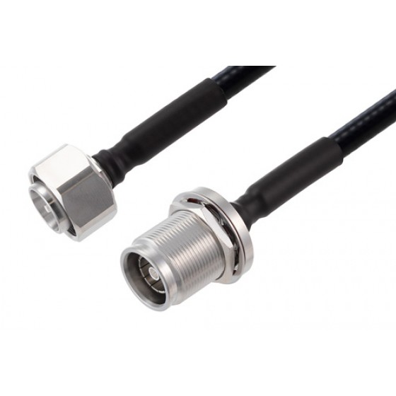 4.3-10 Male to 4.3-10 Female Bulkhead Low PIM Cable 12 Inch Length Using 1/4 inch Superflexible Coax