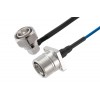 7/16 DIN Male Right Angle to 7/16 DIN Female 4 Hole Flange Low PIM Cable 12 Inch Length Using ET38402 Coax Using Times Microwave Components
