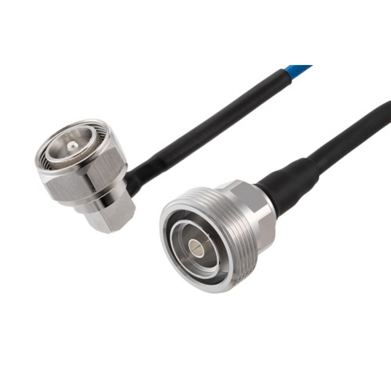 Ebeestock RF coax low PIM cable assembly is built with right angle 7/16 DIN cable connection on one end and 7/16 DIN cable connection on the other. Our low PIM right angle 7/16 DIN to 7/16 DIN cable assemblies have a male gender on end 1 and female on end 2. This 7/16 DIN to 7/16 DIN cable is a male to female coax assembly, ET16634, can also be known as a low PIM right angle 7/16 DIN plug to 7/16 DIN jack cable assembly and will be shipped same-day as it is purchased.