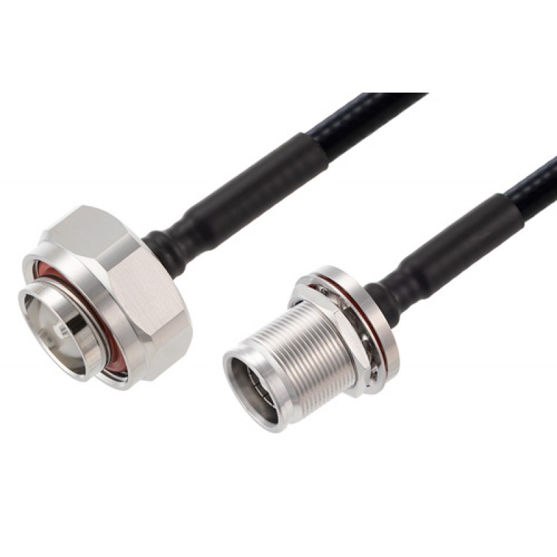 Ebeestock RF coax low PIM cable assembly is built with 7/16 DIN cable connection on one end and 7/16 DIN cable connection on the other. Our low PIM 7/16 DIN to 7/16 DIN cable assemblies have a male gender on end 1 and female on end 2. This 7/16 DIN to 7/16 DIN cable is a male to female coax assembly, ET17448, can also be known as a low PIM 7/16 DIN plug to 7/16 DIN jack cable assembly and will be shipped same-day as it is purchased.