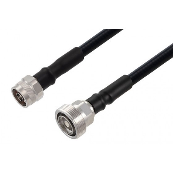 Ebeestock RF coax low PIM cable assembly is built with 7/16 DIN cable connection on one end and N type cable connection on the other. Our low PIM 7/16 DIN to type N cable assemblies have a female gender on end 1 and male on end 2. This 7/16 DIN to type N cable is a female to male coax assembly, ET16967, can also be known as a low PIM 7/16 DIN jack to N type plug cable assembly and will be shipped same-day as it is purchased.
