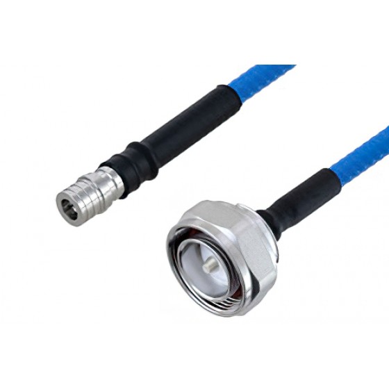 Low PIM 7/16 DIN plug to QMA plug cable assembly is just one of more than 45,000 in-stock RF products available. Ebeestock is where to buy a high quality 7/16 DIN to QMA cable assembly for quick shipment worldwide. Variations of 7/16 DIN cable assemblies can also be built and will ship same-day as well, search this website or contact us for assistance. High quality custom RF cable assembly products for microwave and millimeter wave radio transmitter receiver, antenna jumper, component inter-connection and more for RF test & measurement labs, rugged and MIL-STD designed military / defense, aerospace, telecom, phase stable, phase and delay matching, outdoor and harsh environment and other radio frequency applications can be manufactured. For all these reasons and more, Ebeestock is one of the best websites where to find and buy quality RF cable assemblies like this plenum 7/16 DIN male to QMA male low PIM cable 12 inch length using ET38365 coax , LF solder.