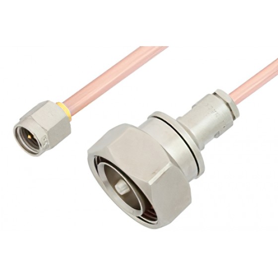 Ebeestock RF coax cable assembly is built with SMA cable connection on one end and 7/16 DIN cable connection on the other. Our SMA to 7/16 DIN cable assemblies have a male gender on end 1 and male on end 2. This SMA to 7/16 DIN cable is a male to male coax assembly, ET17337, can also be known as a SMA plug to 7/16 DIN plug cable assembly and will be shipped same-day as it is purchased.