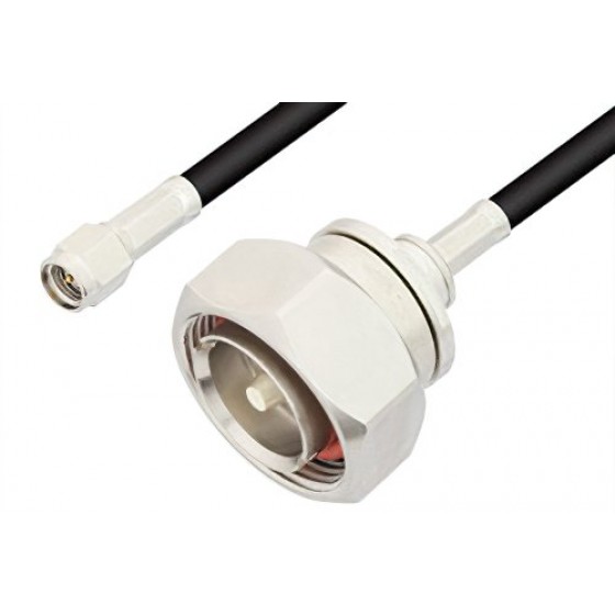 Ebeestock RF coax cable assembly is built with SMA cable connection on one end and 7/16 DIN cable connection on the other. Our SMA to 7/16 DIN cable assemblies have a male gender on end 1 and male on end 2. This SMA to 7/16 DIN cable is a male to male coax assembly, ET17153, can also be known as a SMA plug to 7/16 DIN plug cable assembly and will be shipped same-day as it is purchased.