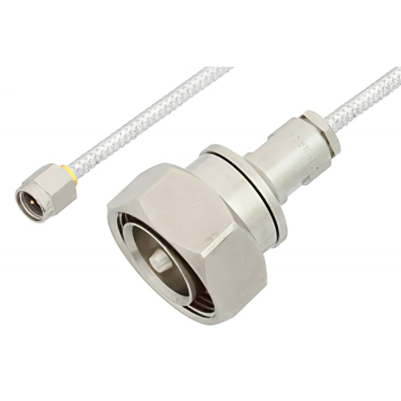 Ebeestock RF coax cable assembly is built with SMA cable connection on one end and 7/16 DIN cable connection on the other. Our SMA to 7/16 DIN cable assemblies have a male gender on end 1 and male on end 2. This SMA to 7/16 DIN cable is a male to male coax assembly, ET17361, can also be known as a SMA plug to 7/16 DIN plug cable assembly and will be shipped same-day as it is purchased.