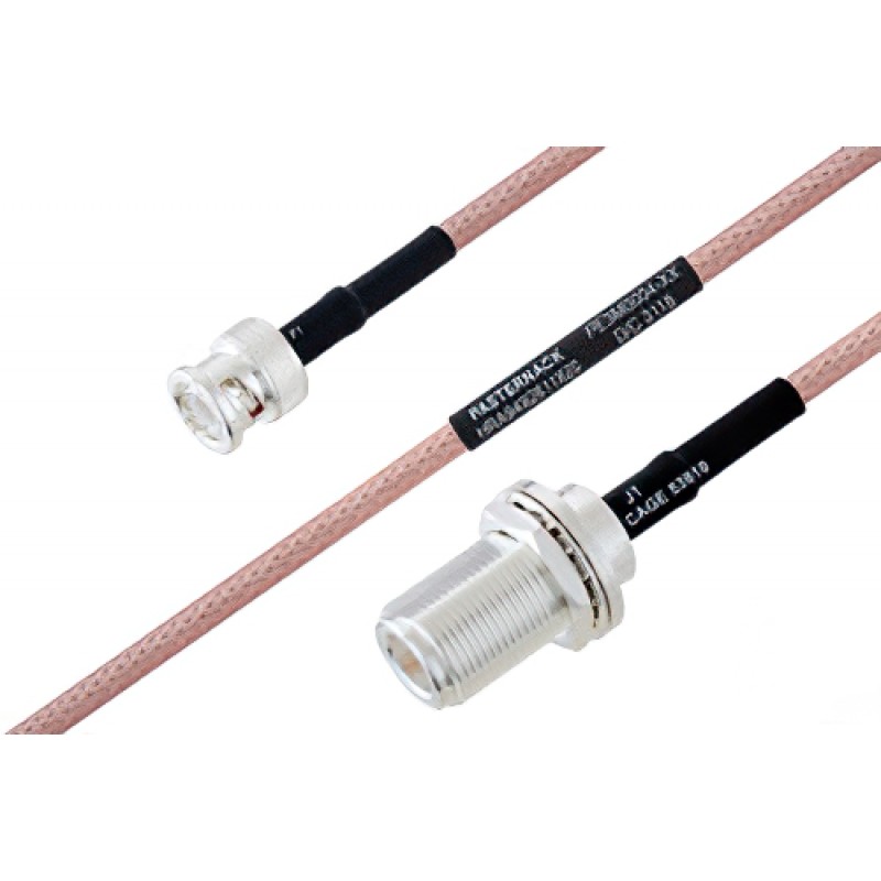 MIL-DTL-17 BNC Male to N Female Bulkhead Cable 12 Inch Length Using M17/60-ET-RG142 Coax