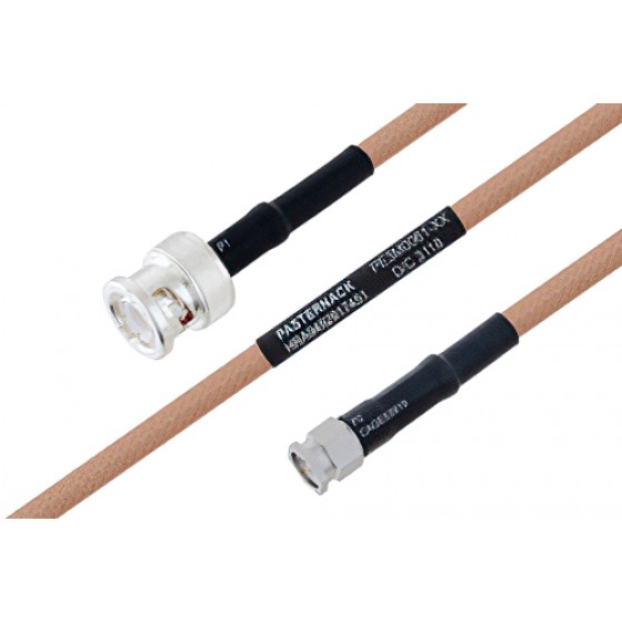 MIL-DTL-17 BNC Male to SMA Male Cable 12 Inch Length Using M17/128-ET-RG400 Coax