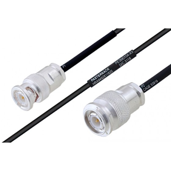 Ebeestock RF coax cable assembly is built with M39012/16-0220 BNC cable connection on one end and M39012/26-0018 TNC cable connection on the other. Our M39012/16-0220 BNC to M39012/26-0018 TNC cable assemblies have a male gender on end 1 and male on end 2. This M39012/16-0220 BNC to M39012/26-0018 TNC cable is a male to male coax assembly, ET20343, can also be known as a MIL-DTL-17/MIL-C-17 M39012/16-0220 BNC plug to M39012/26-0018 TNC plug cable assembly and will be shipped same-day as it is purchased.