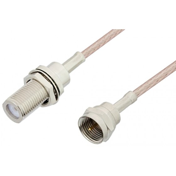 Radio frequency assembly 75 Ohm F male to 75 Ohm F female bulkhead cable 12 inch length using 75 Ohm ET-RG179 coax from Ebeestock is part of the largest selections of same-day ship coaxial cables for RF, microwave and millimeter wave interconnect solutions. Ebeestock coaxial cable assembly products are used in applications requiring high quality such as laboratory RF test and measurement, rugged and designed for defense / military, telecom antenna tower component jumper connection, production environments, general use, etc. 75 Ohm F male to 75 Ohm F female bulkhead cable 12 inch length using 75 Ohm ET-RG179 coax, like our other Ebeestock coaxial cable assemblies, will ship the same day and any custom type F to type F cable assembly orders will ship same day as well.