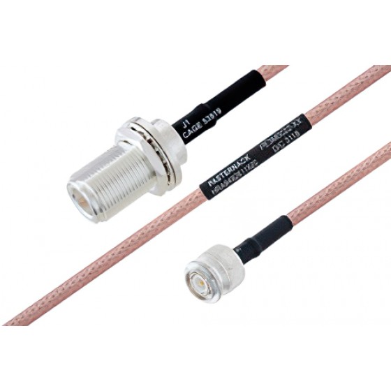 MIL-DTL-17 N Female Bulkhead to TNC Male Cable 12 Inch Length Using M17/60-ET-RG142 Coax