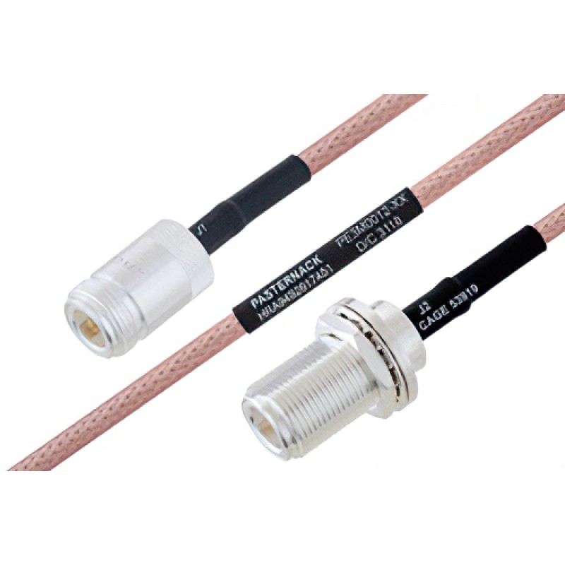 MIL-DTL-17 N Female to N Female Bulkhead Cable 12 Inch Length Using M17/60-ET-RG142 Coax