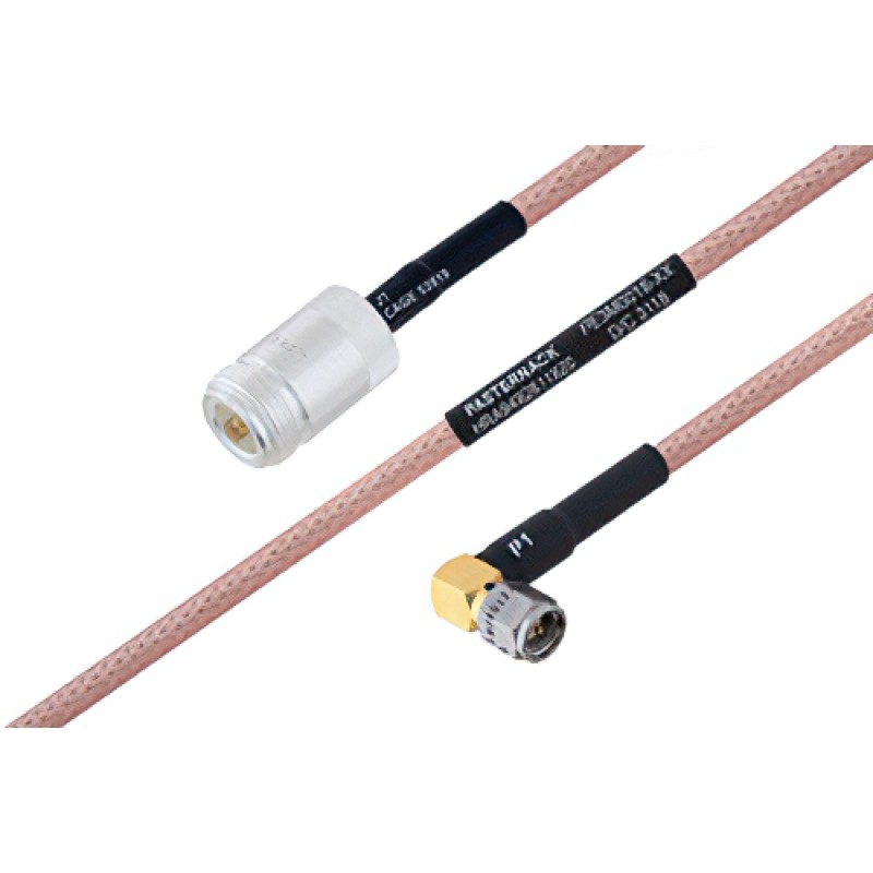 MIL-DTL-17 N Female to SMA Male Right Angle Cable 12 Inch Length Using M17/60-ET-RG142 Coax