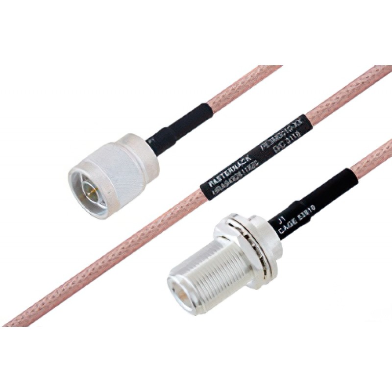 MIL-DTL-17 N Male to N Female Bulkhead Cable 12 Inch Length Using M17/60-ET-RG142 Coax
