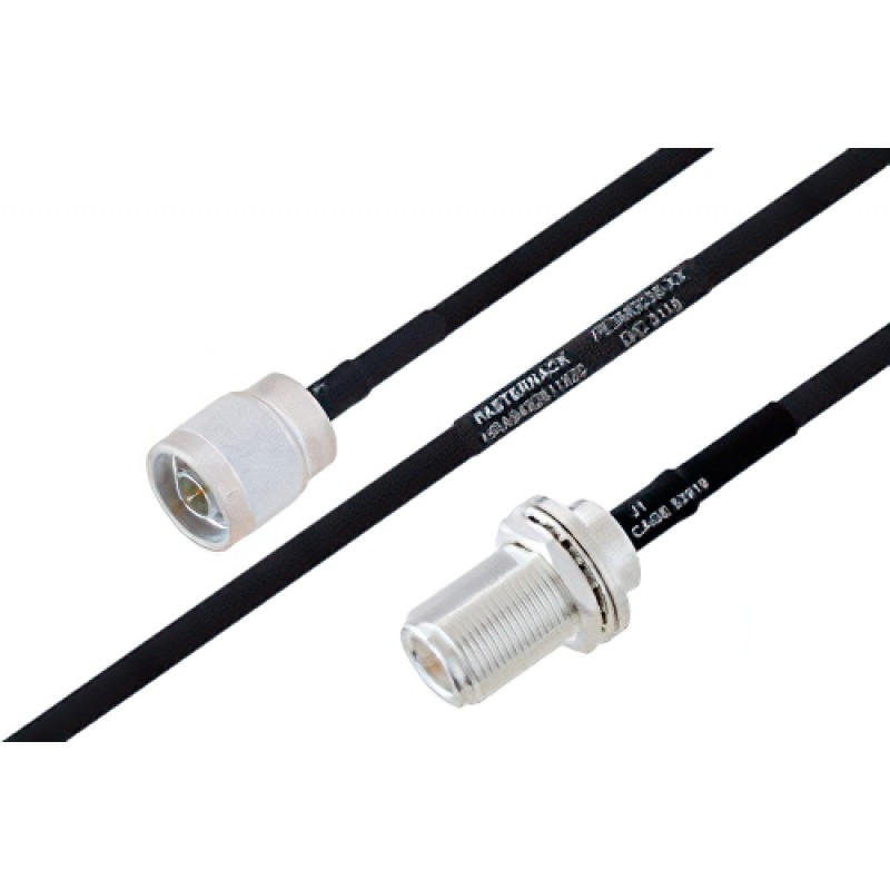 MIL-DTL-17 N Male to N Female Bulkhead Cable 12 Inch Length Using M17/84-ET-RG223 Coax