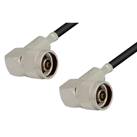 Ebeestock RF coax low loss cable assembly is built with right angle N type cable connection on one end and right angle N type cable connection on the other. Our low loss right angle type N to right angle type N cable assemblies have a male gender on end 1 and male on end 2. This type N to N type cable is a male to male coax assembly, ET27757, can also be known as a low loss right angle type N plug to right angle type N plug cable assembly and will be shipped same-day as it is purchased.