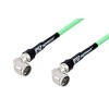 Ebeestock RF coax low loss test cable assembly is built with right angle type N cable connection on one end and right angle N type cable connection on the other. Our low loss test right angle type N to right angle type N cable assemblies have a male gender on end 1 and male on end 2. This type N to type N cable is a male to male coax assembly, ET28569, can also be known as a low loss test right angle N type plug to right angle N type plug cable assembly and will be shipped same-day as it is purchased.
