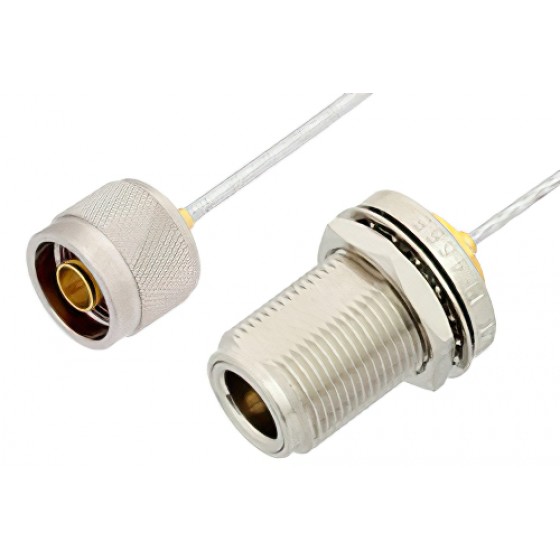 Type N plug to N type jack bulkhead cable assembly is just one of more than 45,000 in-stock RF products available. Ebeestock is where to buy a high quality type N to type N cable assembly for quick shipment worldwide. Variations of type N cable assemblies can also be built and will ship same-day as well, search this website or contact us for assistance. High quality custom RF cable assembly products for microwave and millimeter wave radio transmitter receiver, antenna jumper, component inter-connection and more for RF test & measurement labs, rugged and MIL-STD designed military / defense, aerospace, telecom, phase stable, phase and delay matching, outdoor and harsh environment and other radio frequency applications can be manufactured. For all these reasons and more, Ebeestock is one of the best websites where to find and buy quality RF cable assemblies like this N male to N female bulkhead cable 6 inch length using ET38322 coax.