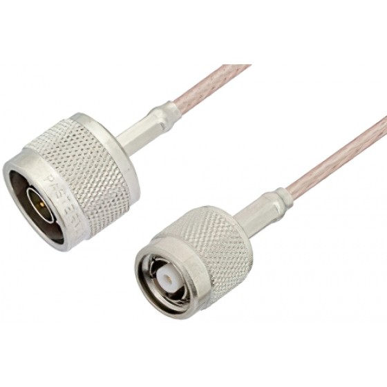 Ebeestock RF coax cable assembly is built with type N cable connection on one end and reverse polarity TNC cable connection on the other. Our N type to reverse polarity TNC cable assemblies have a male gender on end 1 and male on end 2. This type N to reverse polarity TNC cable is a male to male coax assembly, ET27588, can also be known as a N type plug to reverse polarity TNC plug cable assembly and will be shipped same-day as it is purchased.