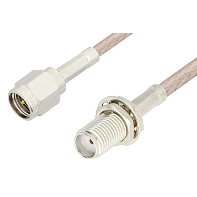 Ebeestock RF coax cable assembly is built with SMA cable connection on one end and SMA bulkhead cable connection on the other. Our SMA to SMA cable assemblies have a male gender on end 1 and female on end 2. This SMA to SMA cable is a male to female coax assembly, ET36521, can also be known as a SMA plug to SMA jack cable assembly and will be shipped same-day as it is purchased.