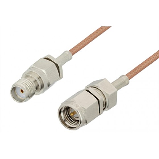 Ebeestock RF coax cable assembly is built with SMA cable connection on one end and SMA cable connection on the other. Our SMA to SMA cable assemblies have a male gender on end 1 and female on end 2. This SMA to SMA cable is a male to female coax assembly, ET35063, can also be known as a SMA plug to SMA jack cable assembly and will be shipped same-day as it is purchased.