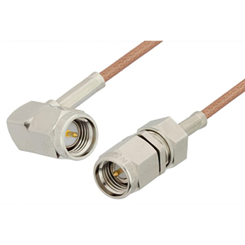 Ebeestock RF coax cable assembly is built with SMA cable connection on one end and right angle SMA cable connection on the other. Our SMA to right angle SMA cable assemblies have a male gender on end 1 and male on end 2. This SMA to SMA cable is a male to male coax assembly, ET36771, can also be known as a SMA plug to right angle SMA plug cable assembly and will be shipped same-day as it is purchased.