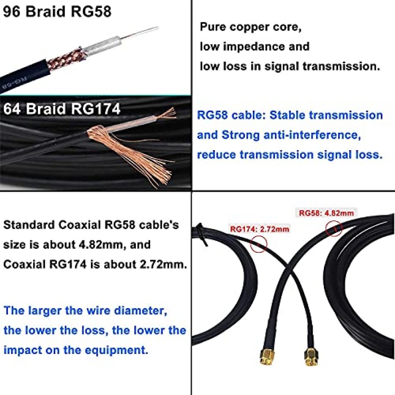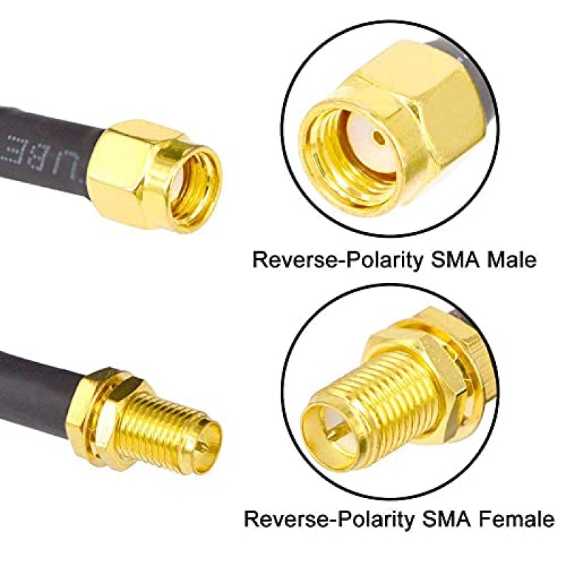 - Premium Material - RG-58 Pure Copper Coaxial Cable Low Loss for Wi-Fi Router, PCI Card, Access Point,Wifi antenna extension wire ,FPV Antenna and so on,The inner conductor of this rg58 Reverse Polarity SMA Female to RP SMA Male coax cable is made of solid copper, so it is efficient and causes low signal loss.