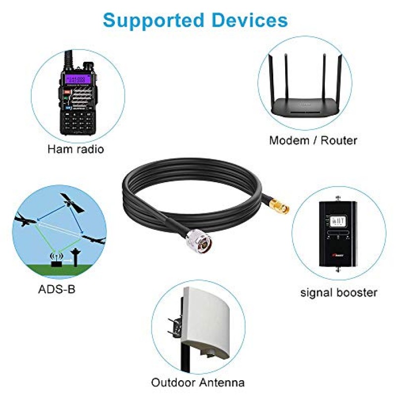 - Well Built Construction - Larger center conductor of this N male to SMA male jumper cable is pure copper but not copper clad aluminium. The waterproof PVC and the high density tinned copper braided(168 braided)provide top-quality, high-performance signal transfer with mini loss. 100% shield performance,95% resistance to EMI and RFI.