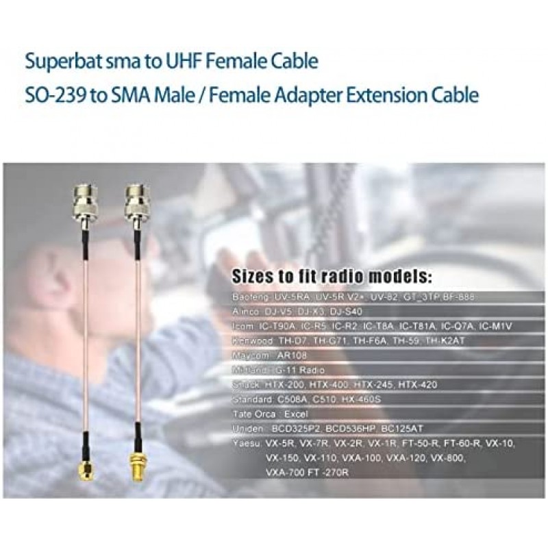 - Package: 1x UHF SO-239 to SMA Male cable + 1x UHF SO-239 to SMA Female Cable