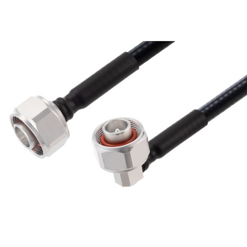 4.1/9.5 Mini DIN Male to 4.1/9.5 Mini DIN Male Right Angle Low PIM Cable 12 Inch Length Using 1/4 inch Superflexible Coax