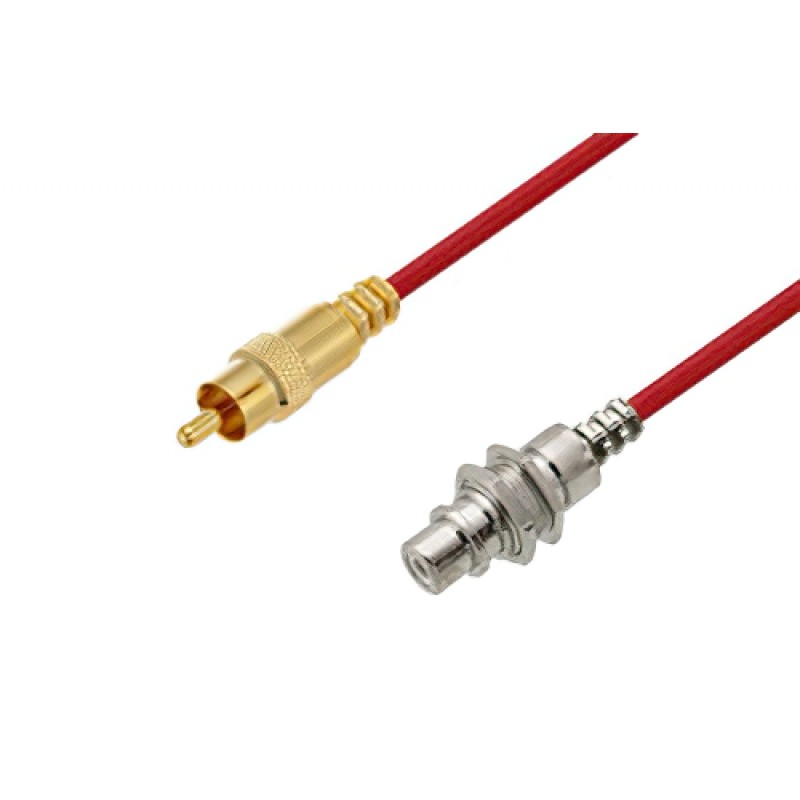 Radio frequency assembly 75 Ohm RCA male to 75 Ohm RCA female bulkhead cable 12 inch length using 75 Ohm ET38346 red coax from Ebeestock is part of the largest selections of same-day ship coaxial cables for RF, microwave and millimeter wave interconnect solutions. Ebeestock coaxial cable assembly products are used in applications requiring high quality such as laboratory RF test and measurement, rugged and designed for defense / military, telecom antenna tower component jumper connection, production environments, general use, etc. 75 Ohm RCA male to 75 Ohm RCA female bulkhead cable 12 inch length using 75 Ohm ET38346 red coax, like our other Ebeestock coaxial cable assemblies, will ship the same day and any custom RCA to RCA cable assembly orders will ship same day as well.