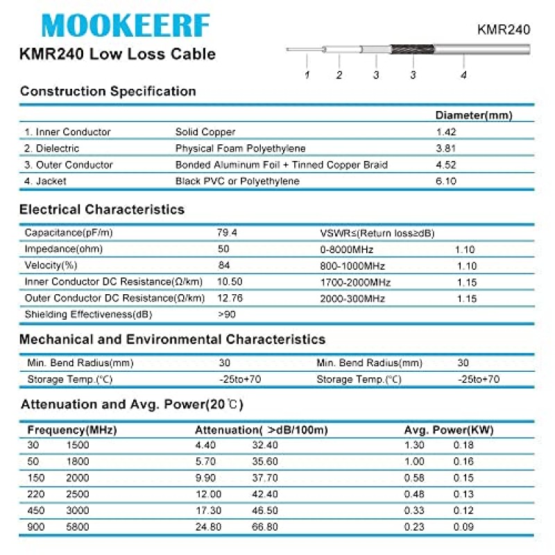 • KMR240 N male cable is thin, flexible, light-weight. It could be bends and strapped without inducing signal interference.