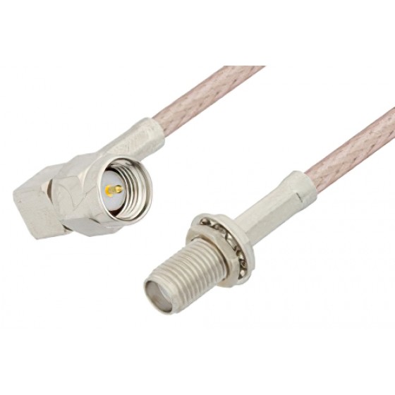 SMA Male Right Angle to SMA Female Bulkhead Cable 6 Inch Length Using ET38399 Coax
