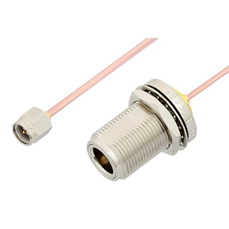 Radio frequency assembly SMA male to N female bulkhead cable 6 inch length using ET-RG405 coax from Ebeestock is part of the largest selections of same-day ship coaxial cables for RF, microwave and millimeter wave interconnect solutions. Ebeestock coaxial cable assembly products are used in applications requiring high quality such as laboratory RF test and measurement, rugged and designed for defense / military, telecom antenna tower component jumper connection, production environments, general use, etc. SMA male to N female bulkhead cable 6 inch length using ET-RG405 coax, like our other Ebeestock coaxial cable assemblies, will ship the same day and any custom SMA to N type cable assembly orders will ship same day as well.