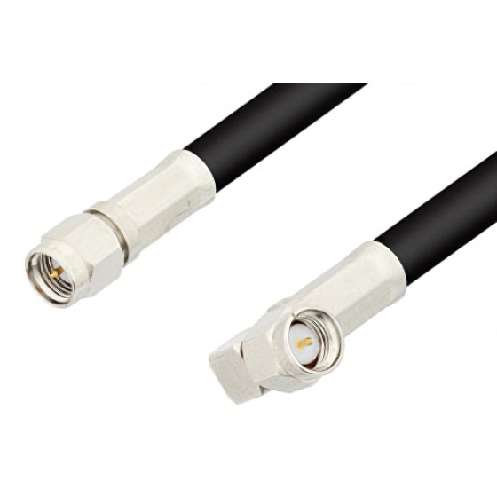 Ebeestock RF coax cable assembly is built with SMA cable connection on one end and right angle SMA cable connection on the other. Our SMA to right angle SMA cable assemblies have a male gender on end 1 and male on end 2. This SMA to SMA cable is a male to male coax assembly, ET36112, can also be known as a SMA plug to right angle SMA plug cable assembly and will be shipped same-day as it is purchased.