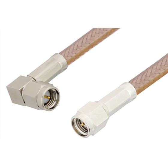 Ebeestock RF coax cable assembly is built with SMA cable connection on one end and right angle SMA cable connection on the other. Our SMA to right angle SMA cable assemblies have a male gender on end 1 and male on end 2. This SMA to SMA cable is a male to male coax assembly, ET35023, can also be known as a SMA plug to right angle SMA plug cable assembly and will be shipped same-day as it is purchased.
