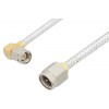 Ebeestock RF coax cable assembly is built with SMA cable connection on one end and right angle SMA cable connection on the other. Our SMA to right angle SMA cable assemblies have a male gender on end 1 and male on end 2. This SMA to SMA cable is a male to male coax assembly, ET37013, can also be known as a SMA plug to right angle SMA plug cable assembly and will be shipped same-day as it is purchased.