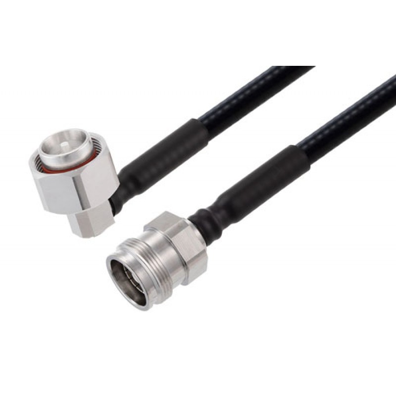 Ebeestock RF coax low PIM cable assembly is built with right angle 4.3-10 cable connection on one end and 4.3-10 cable connection on the other. Our low PIM right angle 4.3-10 to 4.3-10 cable assemblies have a male gender on end 1 and female on end 2. This 4.3-10 to 4.3-10 cable is a male to female coax assembly, ET15235, can also be known as a low PIM right angle 4.3-10 plug to 4.3-10 jack cable assembly and will be shipped same-day as it is purchased.
