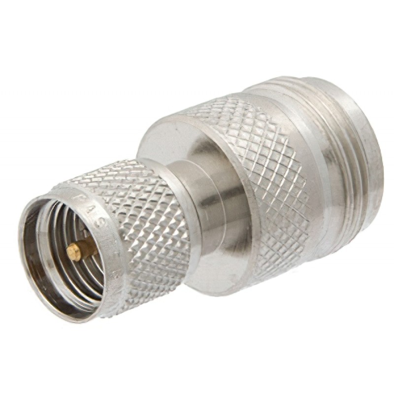 Type N female to Mini UHF male adapter is one of the many RF components that ship same day as they are ordered. ET12438 female type N to male Mini UHF adapter has a straight body. This Ebeestock straight N type coax adapter is a in-line RF adapter.