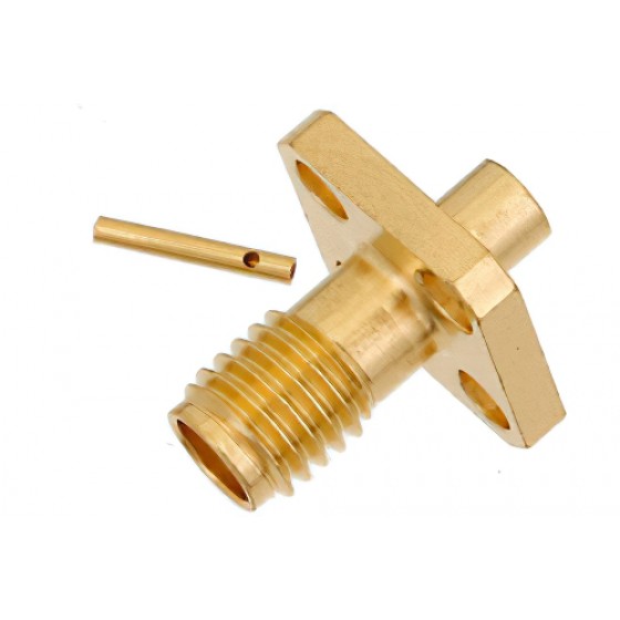 This Ebeestock female SSMA 4 hole flange connector will ship the same day as purchased. Our 4 hole flange SSMA female connector is part of over 40,000 RF, microwave and millimeter wave components in stock for worldwide shipment. We also build custom SSMA connector cable assemblies that will ship the same day as well.