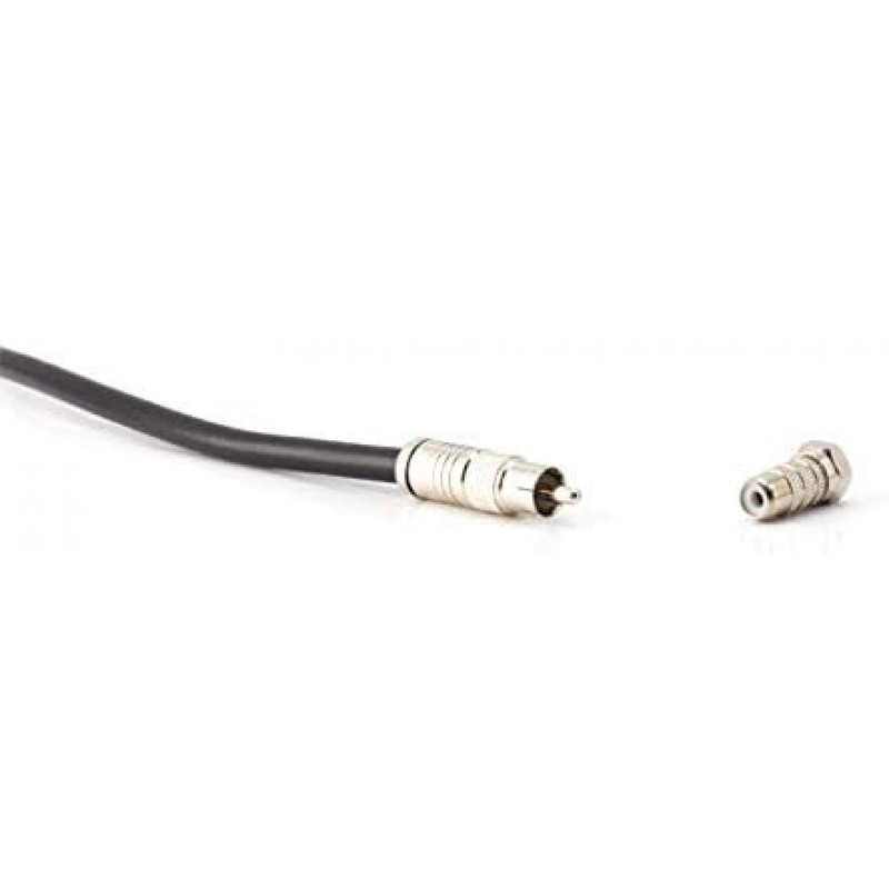 This convenient, premium connector can be used to convert a coaxial cable into a female RCA plug. Choose this adapter for your audio system needs, or simply to create an RCA connection for your long run coaxial cable. Constructed of durable high quality material, this adapter is resistant to corrosion, and has a professional grade design. Additionally, a high-tech strain relief provides a secure link to your cables, assuring a quality connection and optimal performance. Requires a simple plug and play install, with no crimping needed.